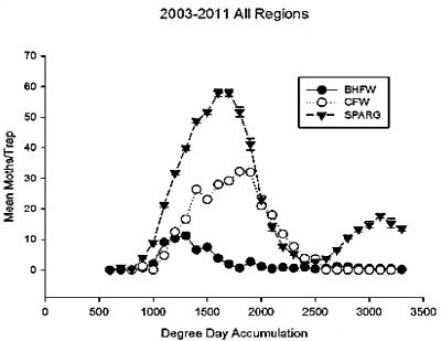 Using seven years of field data, we are pinpointing the degree day at which adult flight begins for the three major Lepidopteran cranberry pests in Wisconsin.